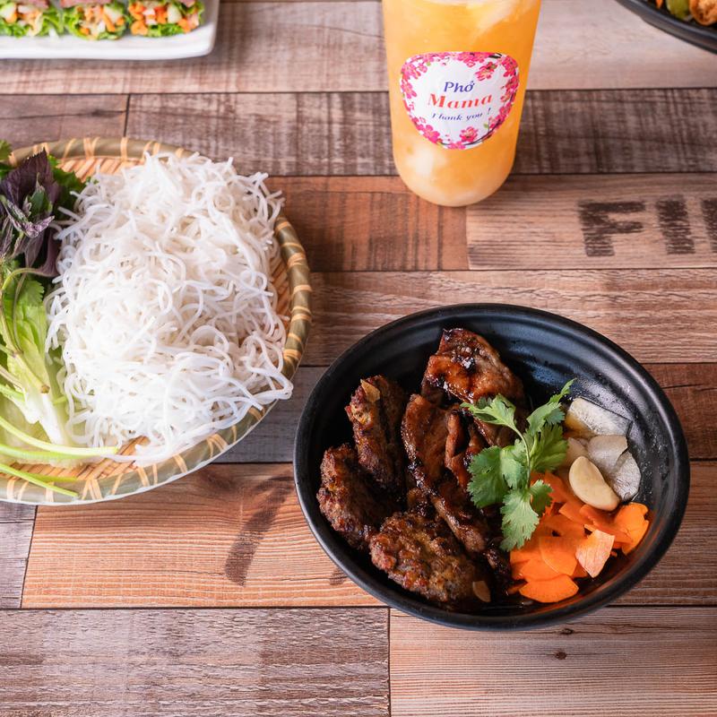 A Vietnamese rice noodle soup made with a tomato and crab soup base. Comes with fried tofu, crab meatballs, pork blood and Vietnamese snail ham.