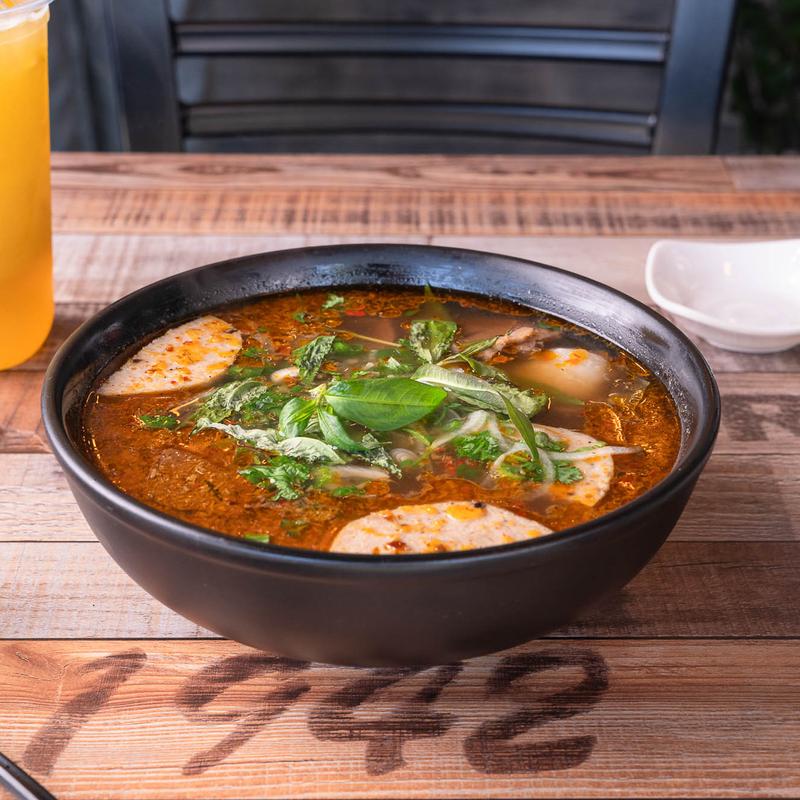 A light and comforting Vietnamese noodle soup in a clean, savory pork-based broth. Comes with pork ribs, pork and wood ear mushroom meat balls, pork rolls, and carrots.