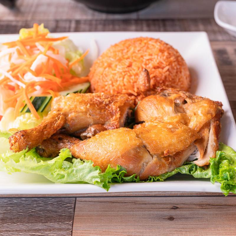 Choice of carb: tomato fried rice, stir-fried egg noodles.